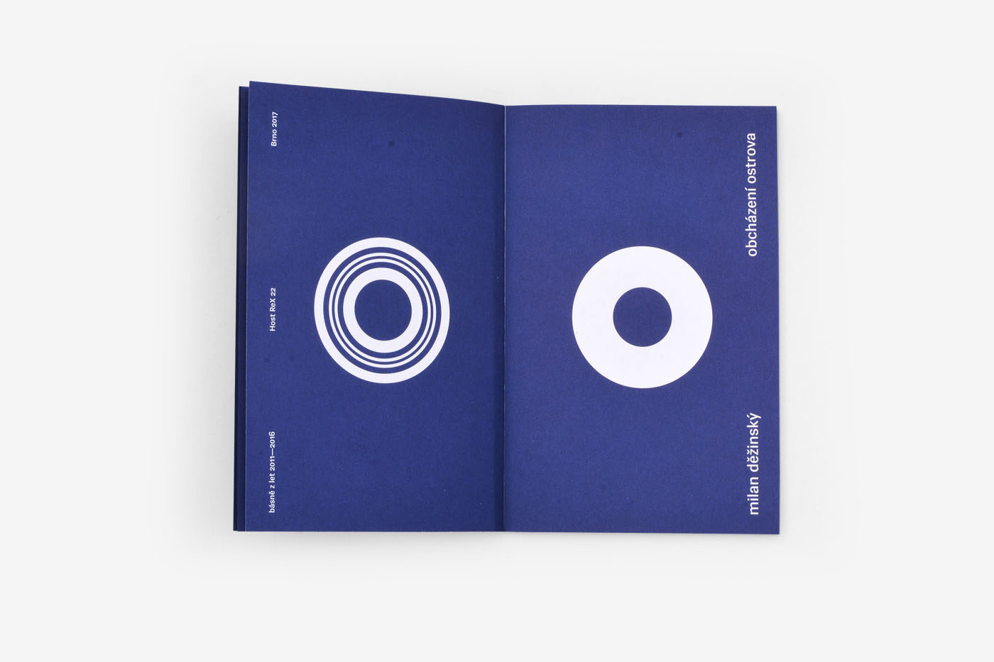 O—O aneb Obcházení ostrova. Nová sbírka básníka Milana Děžinského je plná ostrovů a kruhů na vodě a plotýnek elektrických vařičů. Obálka je tištěna atypicky sítem, zbytek již klasicky ofsetem. Jestli správně počítám, Obcházení ostrova završuje první tucet básnických sbírek z edice ReX, na které pracuji průběžně od roku 2011.