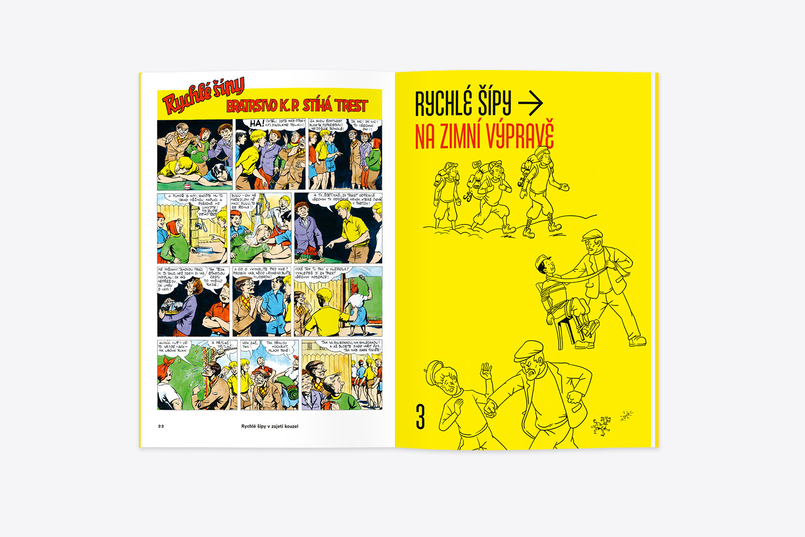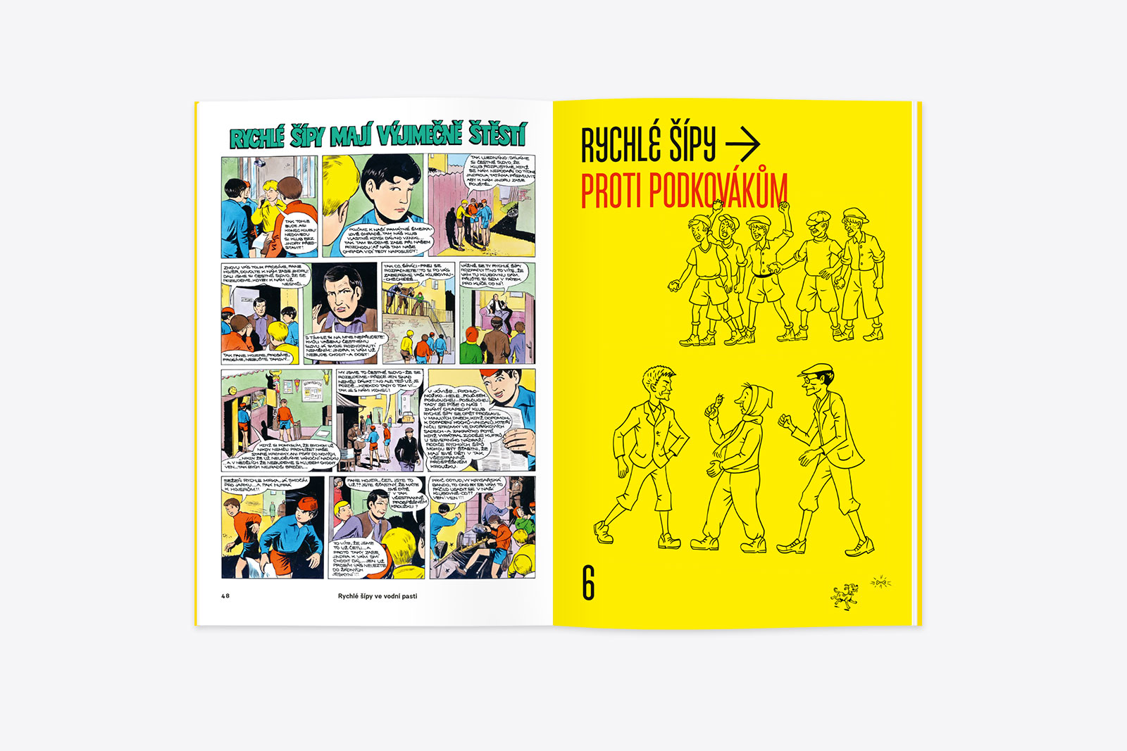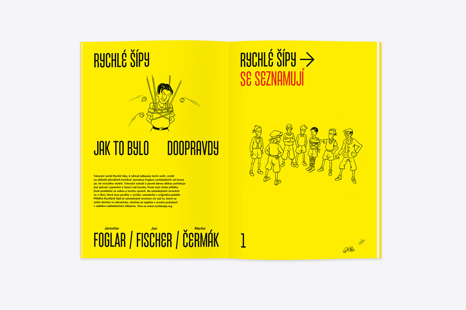 U příležitosti seriálu Rychlé šípy, vysílaného v České televizi, vychází také nový komiksový sešit pro diváky, kteří se s fenoménem pěti dokonalých hochů dosud nesetkali. Kreslíř Karel Jerie rozšiřuje kánon o nové výtvarné pojetí a já je doplňuji grafikou, která se od mých předchozích realisací na první pohled trochu liší. Pozorný čtenář v rožku najde roztomilou animaci psa Bubliny, kterou snadno rozpohybuje, když bude stránkami dostatečně freneticky listovat. Je to už hodně starý trik, ale kupodivu stále funguje.